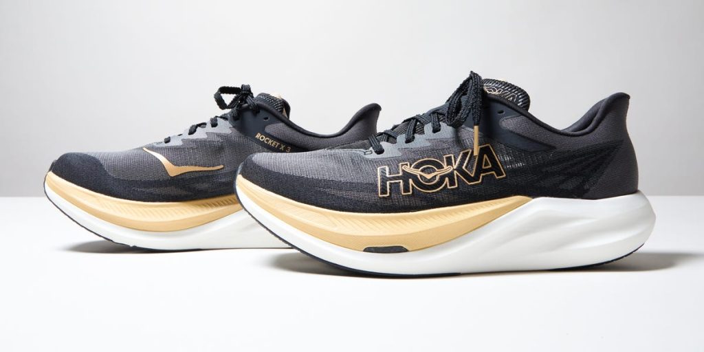 It’s technically a “super shoe”—a catchall term for a running shoe with a carbon-fiber plate in the midsole, designed to jack up your speed—so I wasn’t surprised by that. But I was shocked by how damn comfortable they were. Super shoes tend to have an aggressive rocker, a tight fit, and an uneven center of gravity. The Rocket X 3 has none of those; on my first go-round with them, I felt as if the mad scientists at Hoka had somehow crafted the impossible: a shoe with the durability of a daily trainer that feels like that special-occasion 5K or half-marathon option whenever you run in it.