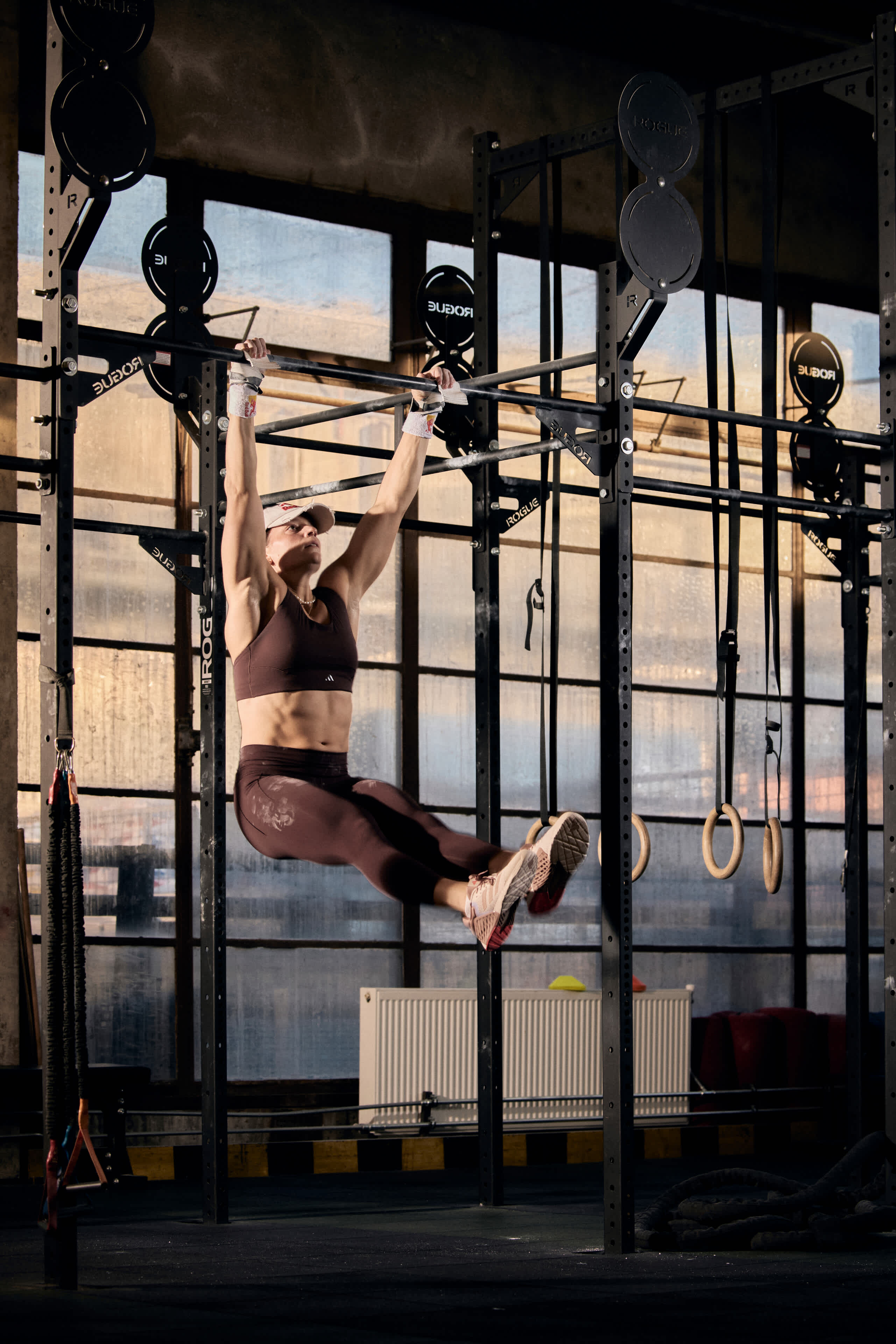 With nearly 50 percent female participation worldwide in HYROX, women’s strength training is becoming mainstream – and Horváth loves it. That’s exactly the kind of movement she wants women to embrace: “I think everyone should be able to do a pull-up. Like, my mom hadn’t been able to do a pull-up in years, but she started doing CrossFit and now she can do pull-ups. And I think that’s amazing.”